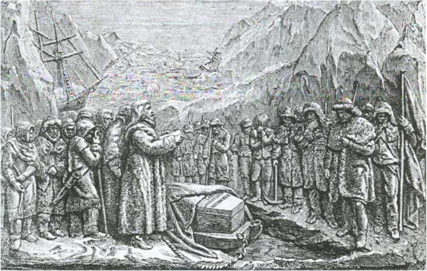Внизу: Зимние похороны. Из похода Мак-Клинтока на яхте «Фокс»