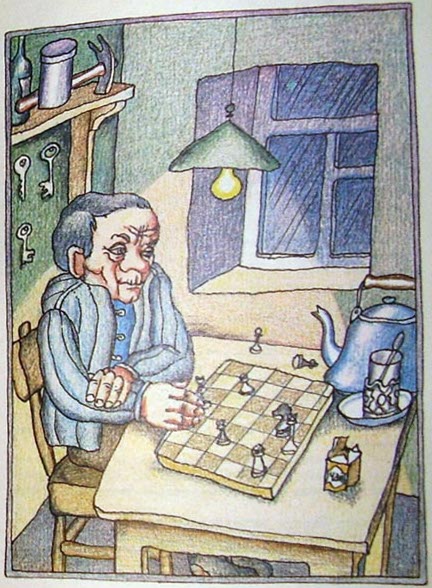 За окном шумел дождь. Дворник играл сам с собой шахматы.