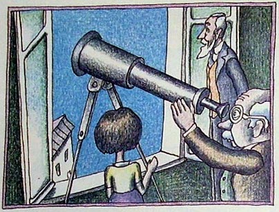 — Что же это такое! — закричал человек, который смотрел в трубу. — Я уже почти нашёл звезду, а тут садятся верхом на телескоп!