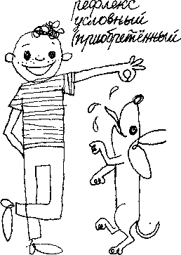 3. Если ваш щенок никогда ещё не пробовал мяса, то даже самый лучший кусок не привлечёт его внимания, не вызовет никакого рефлекса. И только после того, как он попробует мясо на вкус, оно своим видом и запахом начнёт вызывать у него выделение слюны. Так возникает новый рефлекс, которого у щенка раньше не было. Он сам приобрёл его, попробовав мясо. Академик Павлов назвал такие рефлексы ПРИОБРЕТЁННЫМИ или УСЛОВНЫМИ. Эти рефлексы уже не видовые, а совершенно личные. Чтобы у животного появился условный рефлекс, оно должно познакомиться с каким-нибудь новым, ещё неизвестным ему явлением — должно приобрести опыт.