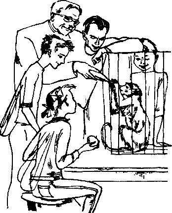 1. Попугаи, вороны и скворцы могут научиться произносить человеческие слова. И даже целые фразы, хотя, конечно, не понимают их смысла. Самые лучшие на свете птицы-говоруны — это краснохвостые африканские попугаи. Они выучивают по нескольку десятков фраз, и у них прекрасное произношение… А если попугай говорит «Попка — дурак» и ругается неприличными словами, можете не сомневаться — эта птица умнее того человека, который её воспитывал. 2. ДВА ОПЫТА. А) Дождёмся, пока Генка заснёт, возьмём травинку и пощекочем у него в носу. В ответ Генка начнёт вертеть головой, наморщит нос и чихнёт. Всё это он успеет проделать прежде, чем проснётся. Заметьте, любое другое существо на его месте будет вести себя совершенно так же.