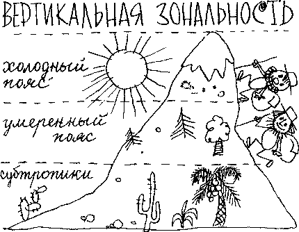 Совершив длинное путешествие по льяносам — так в Южной Америке называются огромные травянистые равнины, на которых лишь кое-где растут деревья, кактусы и кустарник, — учёные отправились к снеговым вершинам Анд. Белые ламы, похожие на маленьких безгорбых верблюдов, покрытые длинной волнистой шерстью, несли их поклажу… Поднимаясь по крутым горным склонам, путешественники следили за тем, как постепенно тропическая растительность уступает место растениям, свойственным умеренному климату, а те, в свою очередь, сменяются полярными мхами и лишайниками. Это было очень важное наблюдение, устанавливающее, что климатические зоны изменяются не только по широтам — от экватора к полюсу, но и снизу вверх — от подножий гор к их вершинам.