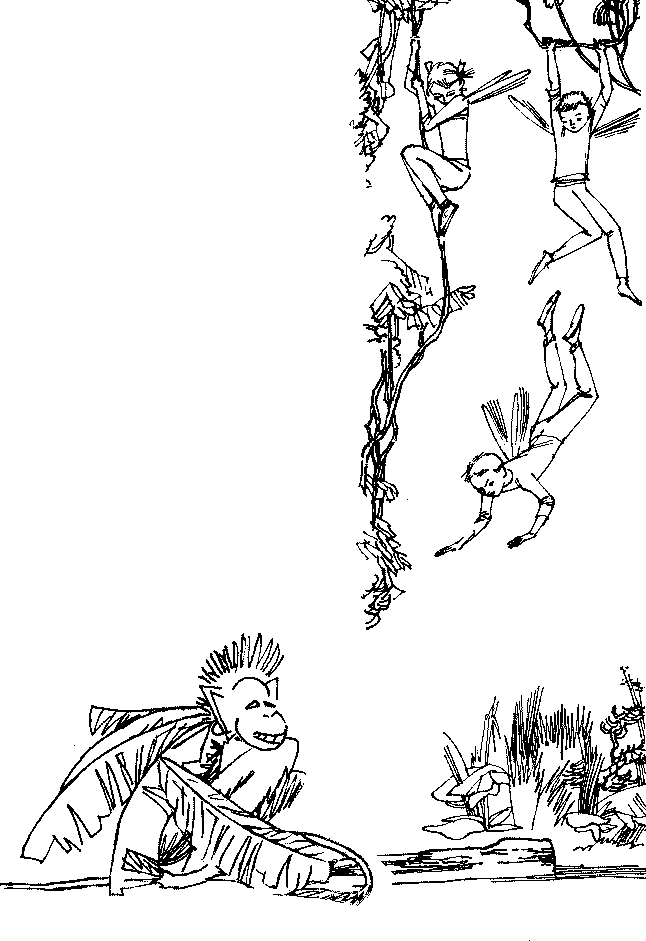 Нкале летела над самыми верхушками деревьев. В правой руке у неё был сачок для ловли бабочек. Им она отмахивалась от своих преследователей. Тёмные тела мартышек вскидывались над качающимися ветвями, кувыркались в воздухе, тянули вверх тонкие чёрные лапы…