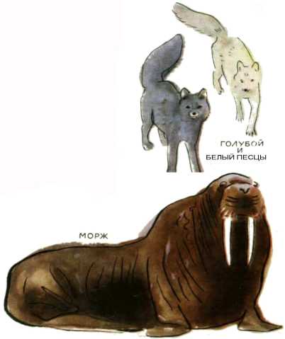 66. У животных, которые живут в умеренном климате, зимний мех длиннее и гуще летнего. Оно и понятно — летом тепло, зимой холодно. Нужно приспосабливаться. И вот весной у большинства наших животных наступает линька — они сбрасывают лишнюю шерсть. А осенью, ближе к зиме, мех у них снова нарастает — густой и пышный. Поэтому охотиться на пушного зверя нужно зимой.Самые ценные пушные звери наших лесов — соболя, бобры, куницы, горностаи, норки, черно-бурые лисы… 67. Над волнами северных морей и Ледовитого океана высятся скалистые, обрывистые острова. Большую часть года на этих островах — снег и лёд. Но летом каменистые утёсы делаются словно живыми от покрывающих их скопищ морских птиц. И в небе их — как в сумерках мошкары над болотом. Они прилетают сюда выводить птенцов, когда наступает полярная весна. Прилетают сотни тысяч, а улетают миллионы. Чайки, чистики, кайры и другие морские птицы чувствуют себя здесь в полной безопасности. Несметные скопища этих птиц называются птичьими базарами… Но приближается осень, и базар закрывается — сеанс окончен. Стая за стаей снимаются со скал и улетают зимовать на юг. А над опустевшими утёсами гуляет холодный ветер, кружит перья и сбрасывает в море яичную скорлупу. Запах помёта и гниющей рыбы постепенно развеивается. Дожди довершают уборку. Неприступные скалы покрываются снегом и льдом на долгую полярную ночь — до следующей весны… Самые большие птичьи базары бывают на островах Новой Земли, которые протянулись далеко за полярный круг, между Баренцевым и Карским морями.