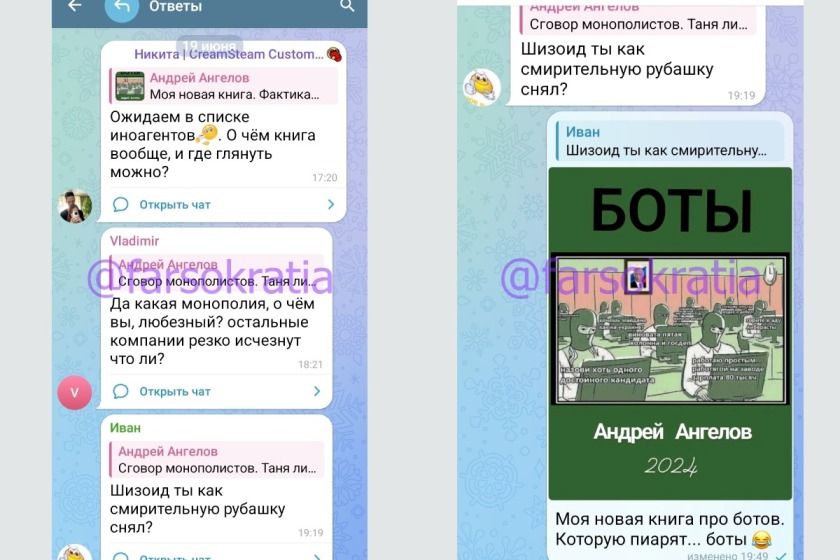 Рис. 5. Диалог ботов с честными гражданами. Включая автора книги.