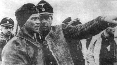 Вальтер фон Хюнерсдорфф родился в Каире, в Египте. И служил в гусарском полку. Видимо «отслужить» в престижном полку курсантом — необходимое условие для приличного генерала. Но на западном фронте Первой Мировой он всего лишь лейтенант. Наверное, чтобы доли солдатской хлебнул. А потом уже проторенная дорожка «находился на », «находился при», «помощник в обучении персонала» в 1930 и уже в 1940 Вальтер внезапно для меня подполковник и начальник штаба целого армейского корпуса. Вот что значит талант! Последняя фраза — шутка. Поясняю для военных, которые с их выслугой лет, такие шутки про «талант» могут и не понять. Все эти «адъютант», или еще более интересные должности вроде таких как «находился при батальоне» — не только синекура для получения зарплаты. Это, как ни странно, именно что школа для будущих высших офицеров. Вращаясь в кругах высокопоставленных военных, молодые генералы вермахта (пока еще нет, но вы ведь понимаете как все устроено) впитывали накопленный опыт и нарабатывали профессионализм. Никого ведь не удивляет, если в семье врачей дети станут врачами. Или в семье публицистов вдруг родится талантливый публицист. Или личные качества бизнесмена, позволившие ему многого добиться, вдруг обнаружатся в его сыновьях — яркие примеры Трампа, Гейтса, Маска прямо перед глазами. Но там, в заснеженной степи, эти высокие профессионалы останутся за картами, а батальоны мотострелков и танков поведут в бой совсем другие люди. Мне неинтересны их имена, но я думаю что они похожи на Иоахима Пайпера — тот, кстати, тоже родился в семье военных. Но врожденного таланта ему хватит только для того, чтобы служить в действующих войсках с 18–20 лет, получая железные кресты, и медленно расти в званиях, с перерывами на годы обучения. Вот он, справа: