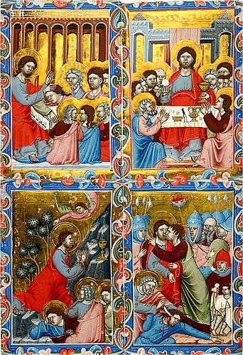 Иллюстрация из венгерской книги про святых под названием Legendary, заказанной Шаробером в 1333 году и, скорее всего, подаренной Андрею для продолжения его образования во время пребывания в Неаполе. (MS M.360.6. By permission of the Pierpont Morgan Library).