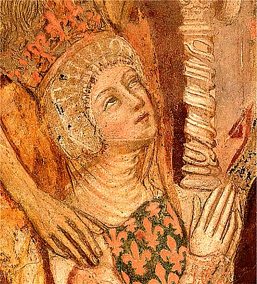 Две сцены из "Таинства брака", заказанные Иоанной, в начале 1360-х годов, для украшения церкви Санта-Мария-Инкороната, Неаполь, Италия. Фрески были написаны Роберто Одеризио, учеником Джотто и придворным художником Иоанны.