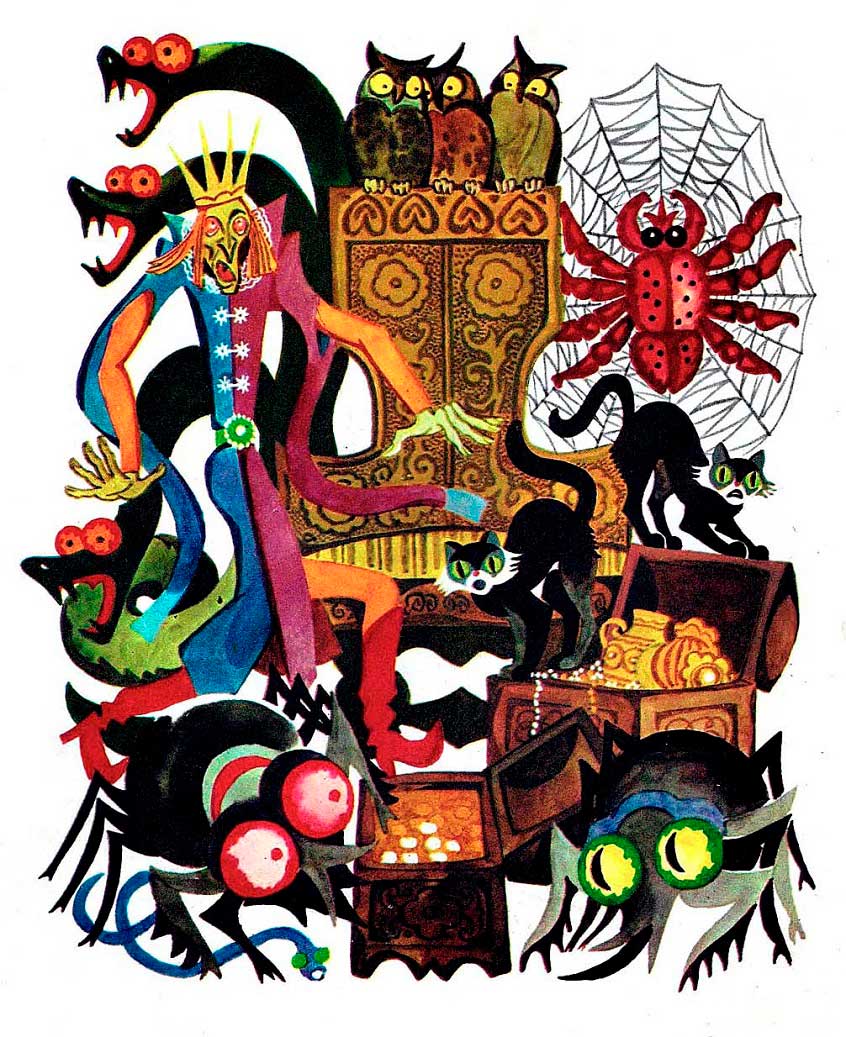 ⠀⠀ ⠀⠀ ⠀⠀ Тут Иван-царевич залился горькими слезами — где же в море яйцо найти!.. Вдруг подплывает к берегу щука и держит яйцо в зубах. Иван-царевич разбил яйцо, достал иголку и давай у неё конец ломать. Он ломает, а Кощей Бессмертный бьётся, мечется. Сколько ни бился, ни метался Кощей — сломал Иван-царевич у иглы конец, пришлось Кощею помереть. ⠀⠀ ⠀⠀ ⠀⠀