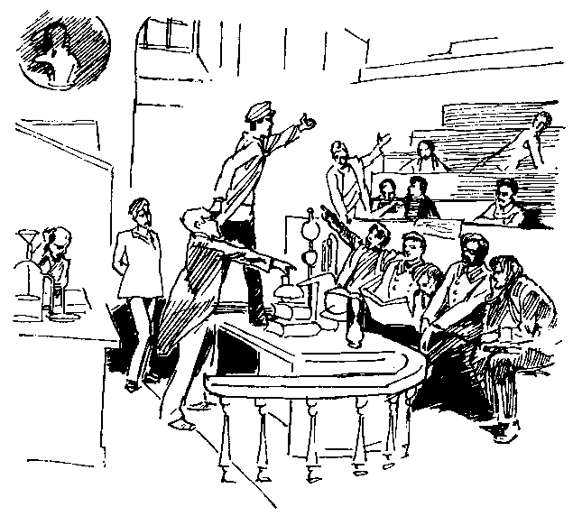 ... — Так все же, коллега, что значит это показание прибора? Петр Петрович! Вы объяснили господину студенту, что не следует полностью доверять гальванометру? Тут возможны очень крупные ошибки. Да, и потому, что измеритель не точен, и потому, что, может быть, что-то постороннее влезло. Попробуйте переставить это вот таким образом... Тогда у вас ток пойдет отсюда... Ну, это вы в гимназии должны были узнать! А вы не бойтесь неправильных мыслей, лишь бы они были смелые, шли вперед да вперед... Наука, знаете, чем-то похожа на шахматы: смелые, новые мысли рвутся вперед, как пешки, и все — одна за другой — гибнут. Но они-то и обеспечивают победу! Одна из них прорвется, станет ферзем — вот и все! Давайте, давайте... вот так сделайте, вот так!.. Ну, что вы молчите? Вы со мной спорьте, если не согласны, выложите ваши возражения! Я же вам не отметку ставлю, мы с вами ученые, спорим только об одном — об истине. Давайте же спорить! Я по лицу вашему вижу, что не согласны вы со мной. Ну и докажите мне мою неправоту... Да бросьте вы его подкалывать, Евгений Александрович! Не обращайте, коллега, на него внимания, изложите мне свои возражения! Ну, ну... Так говорите... Черт его знает! Я вам на такой вопрос сразу ответить не могу. А зачем обязательно спрашивать у своего профессора? Попробуйте решить это опытным путем. Ну конечно, времени порядочно. А только опровержение заблуждения в науке почти так же дорого, как находка истины. Мы же с вами не ради медалей наукой занимаемся! Я когда у покойного Столетова лаборантом работал, то понадобилсямне для опыта алюминий. Он и сейчас не дешевый металл, а тогда он был редкостным, очень дорогим. Покупать его через университетскую канцелярию — недели пройдут!.. Так мне Столетов прислал свои медали, полученные на международных конгрессах да выставках, — их тогда из дорогого и редкого алюминия делали. Я эти медали расплющивал в тоненькие листочки для прибора... А ученому для чего они еще? Как борцу в цирке, что ли, выходить: в ленте через плечо, а на ленте все побрякушки, полученные за свои открытия...