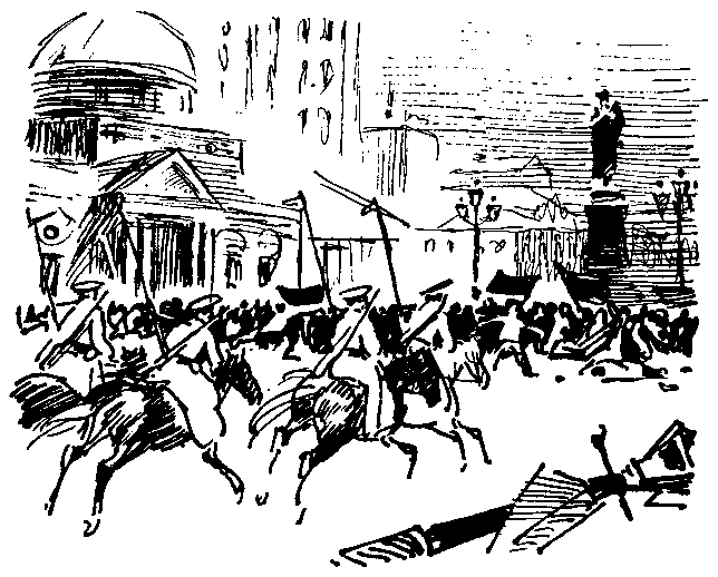 В комнату вбежали солдаты из охраны. — Пришли, пришли! Раненых несут!.. Ревкомовцы двинулись навстречу двинцам. Совет наполнился людьми. Солдаты еще дрожали от горячки боя. На шинелях, на руках они несли раненых, были измазаны кровью. В парадных залах второго этажа на диванах, прямо на полу размещали раненых. В комнате штаба солдаты, задыхаясь, рассказывали. ...Их было всего человек сто пятьдесят. Находились еще в Озерковском госпитале. Пришел туда приказ Замоскворецкого ревкома — двинуться на Скобелевскую площадь для защиты Совета. Сформировали четыре взвода, командовал Сапунов, которого солдаты избрали командиром роты. Пулеметов не было, у каждого только четыре подсумка патронов, гранат тоже ни у кого... Прошли Садовники, мост прошли, никто их не останавливал. Только у Лобного места остановила цепь юнкеров. Спрашивают: «Куда?» Отвечают: «К Скобелевской площади, на охрану Совета...» Пропустили. Почти всю Красную площадь прошли, а у Исторического черно от юнкеров — человек двести, а то и триста... И полковник какой-то с ними. Подошел к Сапунову и командует: «Сдавай оружие!» И, не дожидаясь ответа, из револьвера прямо в лицо Сапунову стреляет... А потом поворачивается к своим юнкерам и командует: «В штыки их!..» Но двинцы шли не строем, растянулись, задние ряды ответили залпом... Юнкера отбежали, началась стрельба. Но юнкеров куда больше, забрались на крыльцо музея, кроют, гады, из-за камней, а их не достать... Двинулись к Иверским, а на углу Никольской с церковной колокольни по ним из пулемета саданули... Побили многих, кого ранили — старались забрать с собой, ведь добьют, сволочи!.. Вырвались к Лоскутному переулку, потом на Охотный и вверх по Тверской... Сколько на Красной осталось, сколько пришло — неведомо, перекличку не делали еще...