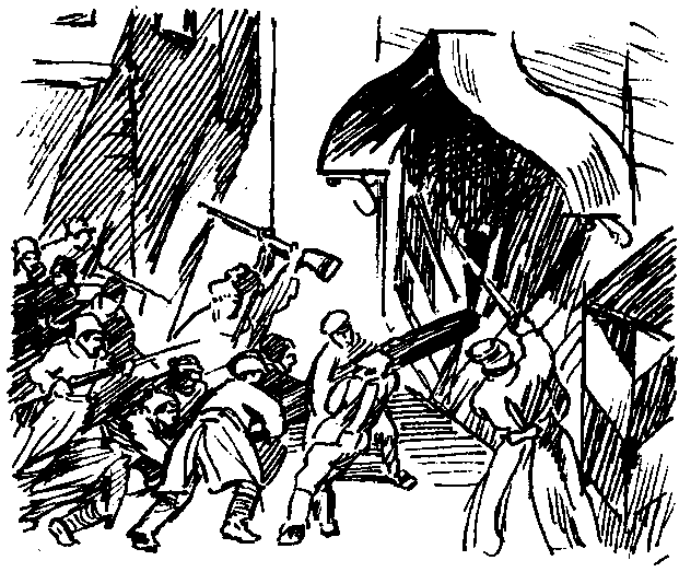 Сейчас мы в этот дом сходим в гости и отлично устроимся. — Чей же это дом, товарищ Максимов? Максимов совершенно серьезно ответил Штернбергу: — Карла Карловича Нирнзее, товарищ профессор! Совсем рядом от нас. В домике девять этажей, на крыше ресторанчик был... Я уже поставил в подъездах своих людей, отобрал винтовки у домовой охраны. Даже лифты работают. Теперь нужно послать туда десяточек опытных ребят и штуки четыре пулеметов. И тогда к Совету и близко не сунутся. Как думает наш военный специалист? Аросев задумчиво почесал свою маленькую бородку. — Как профессиональный военный, опирающийся на богатейший опыт военной мысли, я думаю, что Максимов прав. И мы сейчас в этот теремок пошлем пулеметчиков. Но как опытный вояка, думаю, что без пушек нам не обойтись... Даже в эти невеселые минуты маленькая речь Аросева вызвала улыбки. Был Александр Яковлевич Аросев глубоко штатским человеком. Но так как до своего ареста за большевистскую агитацию он шесть месяцев был офицером, то в ревкоме считался военным специалистом. Самое замечательное, конечно, было то, что Аросев и оказался таким. Спокойный, никогда не теряющийся, он без всякой суеты вызывал артиллерию, посылал на боевые позиции красногвардейские отряды, даже показывал начинающим пулеметчикам, как устранять перекос патрона в затворе пулемета. ...По призыву ВРК и Центрального совета профсоюзов в Москве с утра 28 октября началась всеобщая политическая забастовка. В Совете появлялись женщины, закутанные в платки, похожие на московских молочниц, разносящих молоко по богатым квартирам. Это были связные, пробиравшиеся в Совет через районы центра, занятые белыми. Их сообщения были более отрадными. Московские фабрики и заводы остановились, на заводских дворах идет запись в Красную гвардию, во главе отрядов становятся большевики-солдаты. Оружие! Нужно оружие! Исчезнувший на несколько часов Максимов вернулся в ВРК запыхавшийся. У него в Совете появилась своя компания, куда приходили связные, стекались сведения из районов, с которыми начальник разведки одному ему ведомым путем установил связь. Номер максимовской комнаты — 33 — стал уже названием разведки ВРК. На этот раз из тридцать третьей комнаты пришли очень важные сведения. — Есть винтовки! Есть и еще будут! На путях Казанской дороги, около Сокольников, стоят в тупике запломбированные вагоны. В них сорок тысяч новых винтовок. Есть и патроны к ним. Это раз! — Максимов загнул палец. — Связались с Тулой. В эшелон с дровами, отправляемый в Москву, товарищи погрузят несколько тысяч винтовок и цинки с патронами. Это два... Значит, оружие найдется. Остается решить: кто сможет разгрузить вагоны в Сокольниках и вооружить ими людей? В штабе замолчали. — А каково мнение нашей разведки? — спросил Аросев. — Я так полагаю: винтовки надо перебросить в Замоскворечье. Там у нас самый организованный народ, они сумеют разгрузить вагоны. Из Замоскворечья вести наступление на центр. И сделать в Замоскворецком ревкоме дублирующий штаб. Опять же там у нас сейчас вся партийная печать: и «Известия» и «Социал-демократ». Там уже работают и товарищ Емельян, и Владимирский. Словом, Замоскворечье — наша главная база для наступления. И там Совет — полный хозяин района. — А ревком? — Председатель Совета Косиор, он и в ревкоме председательствует. Начальником штаба Файдыш. Е