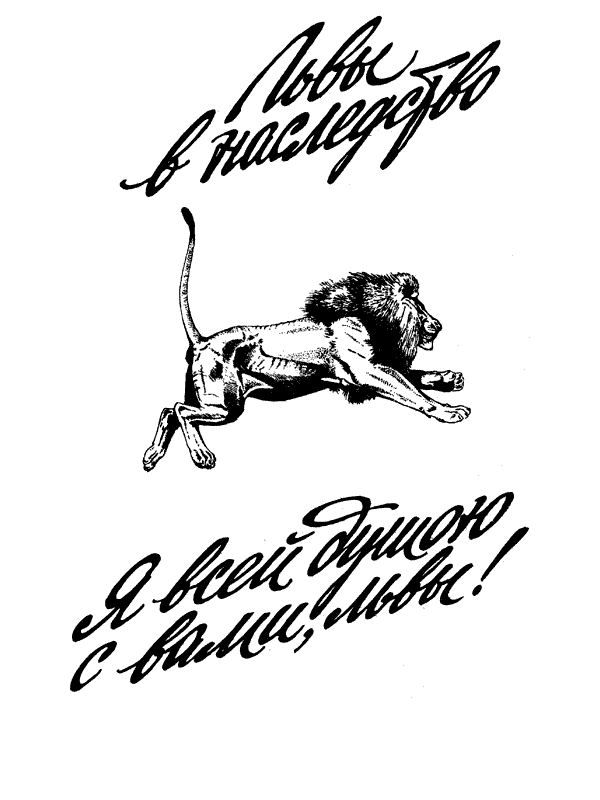 Это было повествование от имени всего львиного племени — голосом одного его представителя. В нем не могло не найтись места и скорбным строкам — о том, сколько львов гибнет по вине человека, от его пуль, ядов, капканов; как нелегко свободолюбивым хищникам в созданных человеком зоопарках и цирках; как разрушается львиная семья, если охотники убивают ее вожака и защитника, а с разрушением семьи гибнет и вся социальная система, на которой держится львиный мир.