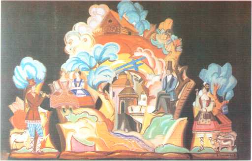 В. И. Шухаев. Эскиз декорации к миниатюре «Пастораль» (Театр Н. Ф. Балиева «Летучая мышь». Париж). 1924. Картон, смешанная техника. ГРМ