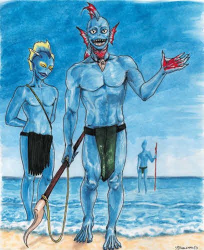 Труп лежал на песке. Труп был тёмно-синий и склизкий. Он пах тухлой рыбой. Пронзительно-белые чайки кружили над ним, беспокойно и жадно кричали. У трупа был вспорот живот. Бледно-сизые рыбьи кишки обречённо торчали наружу. В них ползали крабы и млечно плескалась вода. — Он тут с ночи лежит, комиссар, — Рик откашлялся. — Час назад был звонок от дедка, дед тут каждое утро рыбачит. Мол, опять синекожего грохнули, что за оказия… Мелкий смешок. Комиссар сдвинул брови: — Дедка допросили? Следы, отпечатки, свидетели? — Глухо, — Рик сплюнул в песок. — Дедок говорит, синекожего в море убили. Труп бросили в воду, а тут, понимаешь, течение. Вот нам и работы приплыло. Сюрприз, мать его, Нептуна. У него были красные жабры. Зубастый распяленный рот был наполнен водой. Белым, мёртвым, невидящим глазом синекожий смотрел в небеса. Комиссар закурил. Терпкий дым забивал аромат тухлой рыбы. — Убийство на расовой почве. Пиши. — он всмотрелся в отверстую рану. — Ножевое ранение, наискось через живот. Расцарапана шея. Пытались душить. Под ногтями у трупа. Рик, это зацепка. кусок плотной ткани. Возьмём на анализ. Заметная ткань. Тёмно-серая с золотом. Куртка? Пиджак? Рик сощурился. — С шиком оделся. Видать, не рыбак. Вряд ли кто-то из местных. скорей, городской. Лодку взял напрокат и. тогось. Порыбачил, — он снова хихикнул. Глаза его сделались странными. — Всё, записал. Допрошу деревенских, кто лодку в аренду сдавал. комиссар, мать твою! Что ж им крышу-то рвёт! Третий труп за неделю, и все в разных посёлках. И ладно бы только у нас. Что им синекожие сделали? Ну ладно, уроды. Воняют. Живут под водой. Эта. как его. значит. мутация. Но они ж безобиднее мухи! И прячутся, точно пугливые рыбки. Их выловить — тот ещё квест. А кто-то, смотрю, жить спокойно не может. Кровь, ракушки и чайки. Труп вжался в песок. Волны с шипом катились над ним. Небо было светло и безоблачно. — Да, ненавидят — за то, что их много, — вздохнул комиссар. — Все больше и больше. Они вытесняют нас, ты не находишь? — он смял сигарету. — Вот что. Когда-нибудь нас не останется. — Чушь! — …и вокруг будут плавать по морю одни синекожие, — невозмутимо сказал комиссар. — Да, отсюда и трупы. Я так понимаю мотивы преступников. Хотя, несомненно — не разделяю их чувств, — он сощурился. — Глупо бороться с мутацией. этаким методом. Ч-чёрт, как тянет тухлятиной! Бледное солнце цвело высоко.