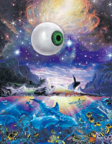 Однако в следующем году мне не удалось побывать в Ленинграде. Да не особо, признаться, и хотелось. Потому что в первую же ночь, когда я перед сном положил «Глаз» под подушку, меня посетили странные фантастические видения. Это был совершенно неописуемый полёт, сопровождаемый неистовством света и красок, линий и форм, смутных видений и неестественно реальных образов. Я летел сквозь сверкающие тоннели, в стенах которых мириадами пор мелькали бесчисленные ответвления во всё новые и новые разнообразные миры. Иногда я неожиданно сворачивал в эти ответвления и летел по совершенно невообразимым просторам, заполненным фантастическими красками и формами, сплетающимися в сложнейшие фигуры. От буйства красок и пространств, от быстрой смены впечатлений мозг отказывался работать, и воспринимать всё это многообразие пролетающих мимо вселенных становилось всё сложнее. Потом полёт несколько замедлился, и я начал успевать рассматривать пролетающие мимо светила. Иногда я проносился над безжизненными скалистыми астероидами или песчаными барханами более крупных планет. Затем вновь ввинчивался в спирально закрученные пространства, чтобы, преодолев их, выноситься на зелёно-голубые просторы инопланетных лугов и лесов, или под багряно-лиловые тучи со сверкающими меж ними разрядами молний. Я плыл над хрустальными подводными сооружениями, между которыми плавали фантастические полупрозрачные, светящиеся существа, похожие и на медуз, и на драконов, и на глубоководных рыб земных океанов. Причём на этой невообразимой глубине встречались люди в глубоководных скафандрах, напоминающие жителей Атлантиды из фантастического романа Конан Дойла «Маракотова бездна». Здесь, в таинственных глубинах океанов далёких планет, я видел и странных существ, грациозно и стремительно плывущих между полупрозрачными строениями, украшенными разноцветными кораллами. А может быть, это были и не кораллы вовсе, а окаменевшие цветы иного мира. Россыпи крупных разноцветных жемчужин и драгоценных камней, самых разнообразных оттенков, были вкраплены в хрустальные колонны, арки и своды фантастических подводных городов, которые словно парили над загадочным дном океана. Между невесомыми строениями проплывали стайки рыб, напоминающих пёстрых рыбок земных коралловых рифов. Они кружили в хороводе вокруг меня, пока я опускался в глубину. Но темней в этой глубине не становилось. Наоборот: свет словно источало дно этих волшебных океанов. А может быть, даже светилась сама хрустально чистая вода. Я опускался на дно, покрытое светящимися водорослями, среди которых встречались фиолетовые и алые растения, похожие на цветы. Впрочем, возможно, это были актинии, или нечто подобное им. Я не сразу разглядел, что разноцветные подводные растения, кораллы и моллюски растут не хаотично, а составляют чудесные орнаменты, словно дно океана покрыто необозримым живым ковром. Нежные полупрозрачные лепестки подводных растений ласкали моё тело, словно трепетные пальцы влюблённого в меня существа. Эти лепестки вытягивались, свивались в неописуемой красоты композиции, скручивались в изящные спирали, словно в брачном танце…* * *