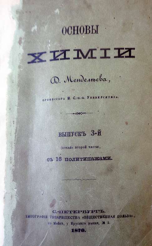 Эта статья и публичный доклад, в ходе которого Менделеев увидел реакцию коллег на свои новые соображения, дали ему уверенность в том, что Закон Природы, о существовании которого он догадывался в ходе построения своей Периодической таблицы в феврале - марте 1869 года, теперь открылся ему во всей полноте и может быть сформулирован вполне строго. В связи с этим встал вопрос - где опубликовать эту формулировку? Чтобы понять, почему Менделеев сделал свой выбор о месте публикации строгой формулировки Периодического закона, вспомним, с какой целью он начал работу по систематизации химических элементов. Главной задачей, которую решал Менделеев, начиная эту работу, была задача облегчить студентам Петербургского Университета усвоение курса химии. И решалась она публикацией нового учебника по курсу "Основы химии". К концу 1870 года вышли два выпуска этого учебника и готовился к печати третий. Как и в случае с первым выпуском, к моменту, когда сложилась новая форма Периодической таблицы, его текст был уже напечатан. Но, в отличие от ситуации марта 1869 года, еще не был окончательно сброшюрован и не поступил в продажу. И еще можно было успеть вставить новый вариант таблицы перед текстом. Спешка была такова, что техническое указание Менделеева в типографию о размещении таблицы попало на обложку третьего выпуска: