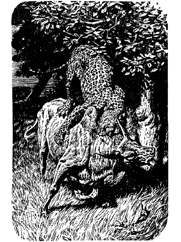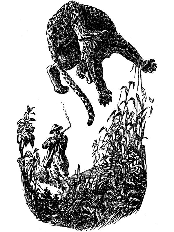 Однажды в одну из этих десяти ночей леопард взломал дверь дома, в котором, по счастью для его обитателей, было две комнаты, причем дверь внутренней комнаты оказалась достаточно прочной и выдержала его бешеное нападение.
