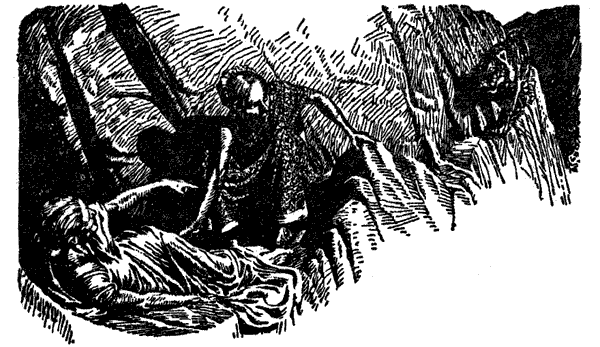 Взвесив обстоятельства после внимательного осмотра, я вернулся во двор и попросил старосту снабдить меня ломом, крепким деревянным колом, молотком и собачьей цепью. Ломом я вскрыл и поднял одну из каменных плит в середине двора, крепко вколотил в землю кол и к нему прикрепил цепь. Потом с помощью старосты принес туда тело мальчика и надел на него цепь.