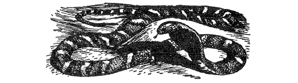 В этот одиннадцатый и последний вечер провожал меня Ибботсон. Приблизившись к Голабраи, мы увидели людей, стоявших на обочине дороги и смотревших вниз на поле, находившееся на небольшом расстоянии от мангового дерева. Люди нас не заметили, и прежде чем мы подошли к ним, они повернулись и пошли по направлению к убежищу паломников. Однако один из них посмотрел назад и, увидев, что я кивнул ему, возвратился. В ответ на наш вопрос он сказал, что вместе со своими спутниками в течение целого часа смотрел на грандиозную битву между двумя большими змеями внизу на заброшенном поле. В последний раз за ними можно было наблюдать поблизости от большой скалы в середине поля. На этой скале виднелись пятна крови. Человек сказал, что это кровь змей, покусавших друг друга. Сломав ветку с ближайшего куста и пользуясь ею как палкой, я спрыгнул вниз на поле, чтобы посмотреть, имеются ли какие отверстия около скалы, и, разглядывая почву, заметил обеих змей, лежавших в кустах чуть ниже дороги. В это время и Ибботсон тоже вооружился основательной палкой, и, когда одна из змей попыталась вылезти на дорогу, он ее убил. Другая же скрылась в отверстии около бугра, откуда нам было трудно ее выгнать. Змея, которую убил Ибботсон, оказалась около семи футов длиной, однотонного светло-соломенного цвета; на ее шее виднелось несколько следов от укусов. Это не был полоз; увидев ее заметно выдававшиеся ядовитые зубы, мы пришли к заключению, что это какая-то разновидность бескапюшонной кобры. Холоднокровные животные также восприимчивы к змеиному яду. Я видел лягушку, ужаленную коброй и умершую через несколько минут, однако мне не было известно, могут ли отравить друг друга змеи одной и той же разновидности. Возможно, что та, которая скрылась в отверстии, умерла через несколько минут, но, может быть, она осталась в живых и умрет в глубокой старости.