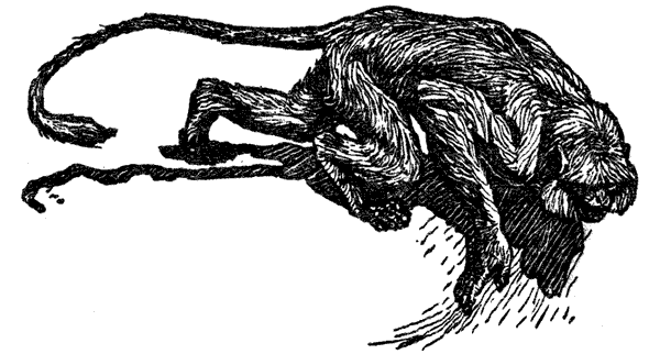 На пути, вниз по горе, загонщики нашли голову несчастной девушки. Узкий столб дыма, подымавшийся в тихом воздухе из ущелья, указывал, что родные исполняли обряд над последней жертвой чампаватского людоеда на том самом месте, где зверь был убит.