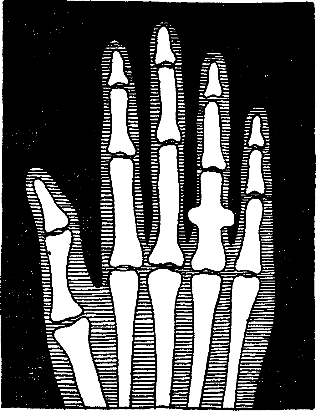 Именно таким способом, обнаружив интерференцию и дифракцию у рентгеновского и других видов излучения, установили, что все они — волны, только разной длины. Длина волны излучения и есть тот основной признак, по которому мы количественно различаем разные виды электромагнитного излучения. Наибольшая длина у радиоволн: от нескольких километров до нескольких сантиметров. У тепловых лучей она короче — от 1 до 10-2 см. Еще короче волны видимого света, примерно 4∙10-5—8∙0-5 см. Наконец, у рентгеновских лучей длина волны составляет лишь 10-7 — 10-8 см. Все виды излучения распространяются с одной и той же скоростью — со скоростью света с = 3∙1010 см/с. Отсюда по формуле ν=c/λ очень просто вычислить частоту каждого вида излучения. Очевидно, для рентгеновского излучения она будет наибольшей, а для радиоволн — наименьшей.