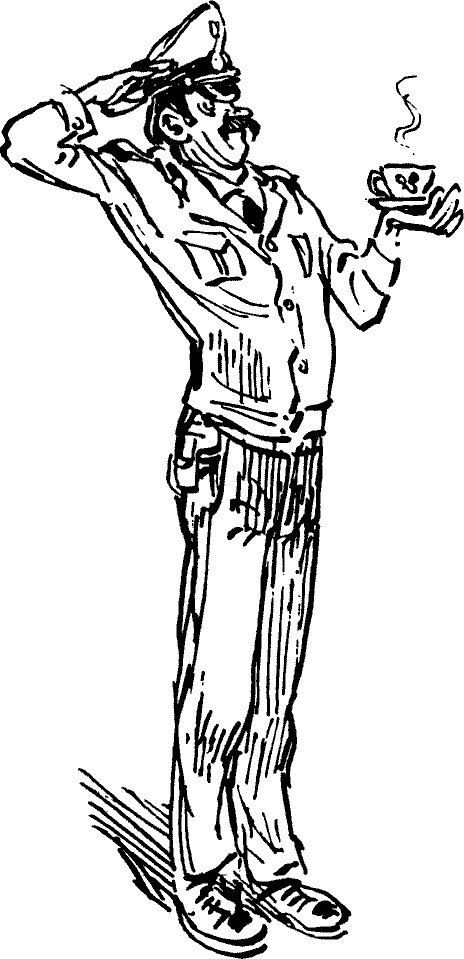 Вскоре все уселись за большой обеденный стол под красивым оранжевым абажуром, и, когда каждый выпил по чашке ароматного чая и гости обменялись с хозяевами последними новостями, в дом вошел молодой сержант милиции Иван Бурбицкий. — Здравствуйте, — поприветствовал он хозяев и гостей. — Что-то народ у вас под окнами ходит. Не обижают? — Нет, не обижают, — ответил Алеша. — Но надое-ели, — протянул Фуго. — Все на меня хотят посмотреть. Житья от них нет. Ходят и ходят без дела. Лучше бы дорогу в лес заасфальтировали, чтобы удобнее было за грибами ходить. Все какая-то польза была бы. — А то, если что, зовите меня, — расправив плечи, проговорил сержант милиции. — Всех арестую.
