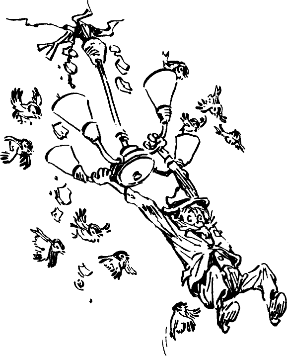 — Караул! — закричал сержант милиции, пытаясь сбросить с себя Алешиного папу. Увидев, как Фуго сбил сержанта, Алеша так захохотал, что не удержался и свалился с комода. Стул, на котором капитан милиции подпрыгивал и размахивал фуражкой, почему-то развалился под ним, и страж порядка кувырком полетел вниз. Второй сержант попытался поймать своего начальника, и они вместе покатились по полу. В этой свалке не пострадали только двое — Светлана Борисовна и Даринда. Они обе страшно перепугались и бросились выяснять, что у кого сломано. Но тут же в недоумении остановились: все пятеро пострадавших лежали на полу и корчились от смеха. Они хохотали так долго и громко, что на шум прибежали ближайшие соседи, которые как раз проходили мимо калитки и увидели милицейскую машину. — А что это у вас здесь? — испуганно спросила соседка Антонина Васильевна. Светлана Борисовна хотела было ответить ей, но не выдержала и тоже зашлась смехом. Она повалилась на диван, широко раскинула руки и простонала: — Ой, не могу! — То всю ночь храпят как сумасшедшие, то весь день хохочут как ненормальные, — растерянно улыбаясь, проговорила Антонина Васильевна. Она посмотрела на своего мужа и, хихикнув, добавила: — Ну и соседи нам достались. Умора. — Ага, — ответил муж и рассмеялся. Через минуту соседи хохотали вместе со всеми. Вытирая слезы, Антонина Васильевна согнулась пополам и медленно сползла по стене, а ее муж схватился за живот и упал между Алешей и капитаном Приходько. Безумство продолжалось минут пятнадцать, а потом все разом как-то замолчали. Изнемогшие от смеха, они лежали на полу, нервно подергивали ногами и приходили в себя. Первым поднялся на ноги капитан милиции. Он отыскал свою фуражку, стряхнул с нее пыль и серьезно проговорил: — В следующий раз попрошу милицию зазря не беспокоить. Вторым встал Фуго. Он прошелся по своему разоренному жилищу и мрачно сказал: — Хорошо погуляли. От мебели одни дрова остались. — Мда, — почесывая затылок, согласился с ним Алексей Александрович. — Мебель у вас, прямо скажем, не очень. — Это точно, — подтвердил капитан Приходько. — Я бы даже сказал, что мебелью здесь и не пахнет. Это же надо, такие маленькие птички, а дел натворили… — Да чего уж на птичек-то сваливать, — проворчал Фуго. — Я сам видел, как вы сломали мне стол и два стула. — Я при исполнении служебных обязанностей, — покраснев, ответил капитан и добавил: — А при исполнении всякое бывает. Иногда и жизнью приходится рисковать. Птиц решили больше не ловить. Для того чтобы воробьи могли улететь, Фуго настежь раскрыл окна и двери, и уже через несколько минут пернатые покинули дом. В Игнатьево возвращались молча. Все, кроме Фуго, чувствовали себя виноватыми и пытались придумать, как помочь мимикрам восстановить в доме порядок. Обед давно остыл, и Светлане Борисовне пришлось его разогревать. За столом почти никто не разговаривал, но в самом конце Алеша вдруг напомнил Фуго: — Здорово ты вместе с плафоном прямо на голову милиционеру… На некоторое время в гостиной воцарилась напряженная тишина, а потом вдруг все так захохотали, что у соседей с испугу завыла собака. — А как… а как… — хотел что-то сказать Алексей Александрович, но не смог больше выговорить ни слова и уткнулся лицом в салатницу. — А я с комода… — выдавил из себя Алеша и повалился под стол. — Ой, не могу! — хохоча, п