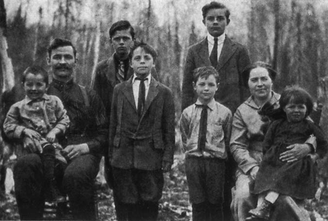 Семья Супруна на лесной вырубке в Канаде. 1918 г. Степа — во втором ряду слева.