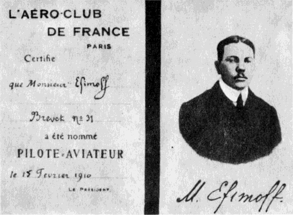 Диплом пилота-авиатора, выданный Михаилу Ефимову аэроклубом Франции 15 февраля 1910 года