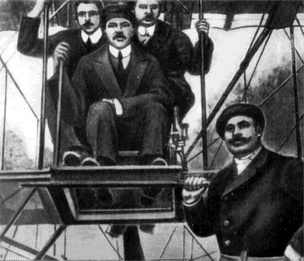 Первый самостоятельный полет Владимира Ефимова 28 мая 1910 года в Вероне. В центре стоит Михаил Ефимов.