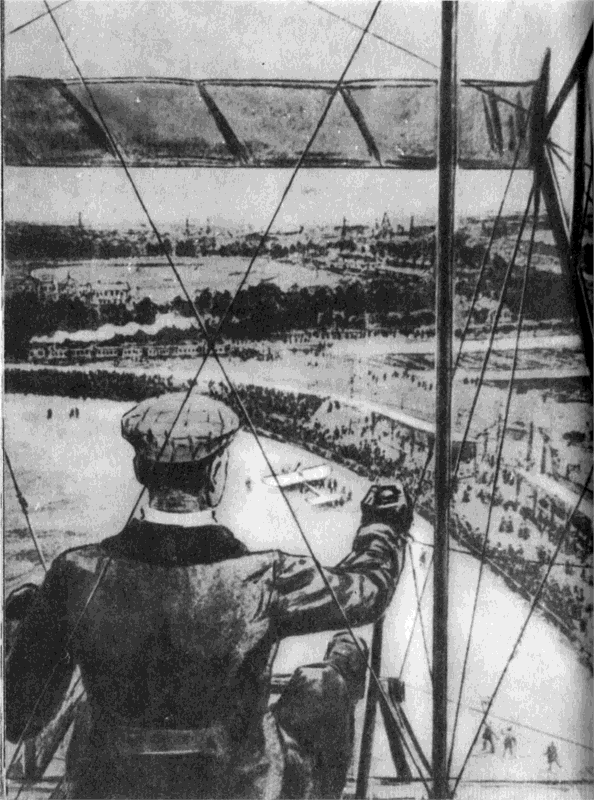 М.Н. Ефимов над Комендантским полем. 1911 г. Петербург. Рис. И. Владимирского