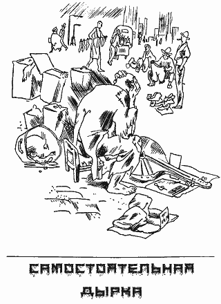 Стоит украинско-немецкая самостоятельная государственная дыра. Глухой ночью, по сторонам оглядываясь, приседая и подпрыгивая, как испуганный волк, приблизился к дыре человек. - Тю! Кто же это на дырку кучу пакли высыпал?! - Какая ещё пакля?! Это моя голова, а не пакля. Это - я! Украинский фюрер всего Правобережья! Голову на прогулку выпустил! Духота в государстве! Территорию надо расширять, а то воняет, хоть плачь! Негде населению распределиться. Оно к весне идёт, горы растаяли, и моря вышли из берегов - негде ногой ступить! - А для меня место найдется? - Да как-нибудь! А ты откуда? - От батька! - Ну, как оно там? Скоро ли уже Киев возьмём? - Киев?! Какой там Киев, когда и самого батька взяли! - Как? Кто взял?! - Немцы! - Кого? Бандеру?! Батька нашего?! - Да его же! - Куда? - В тюрьму взяли! - Да ну? - Вот тебе и «ну»! Вот письмо мне дал, чтобы жене его как-нибудь передал! - Вот тебе и раз! Ну, залезай в дырку, поговорим. Куча пакли исчезла в дырке, а за ней, кряхтя, полез туда государственно-самостоятельный дипломатический курьер от самого верховного фюрера украинско-немецкого самостоятельного и ни от кого не зависящего государства. - Ребята, - сказала пакля, - Гость у нас! Возьми кто лопату да подгреби горы к стенке, потому что некуда человеку и ноги протянуть. Да канал бы от моря прокопали, вон там, за южной границей, потому что, видите, уже по всей территории море пошло. Да копай осторожно, чтобы солома в головах не подплыла! Копай глубоко, может, какой заграничный корабль приплывёт... - Копали уже... - Копай, я тебе говорю! Это дело не простое, а дело государственное - каналы копать! - Говорили, что министром буду, а оно только то и делаешь, что горы окучиваешь и каналы копаешь! - Не болтай! Копай! Большую дырку выкопаем, то и тебя министром на левый угол назначим! Ну, садись, курьер. Так как же оно так? То говорили, что гетманом всей самостоятельной Украины будет, а то взяли и в тюрьму? Что же это оно такое? - А я знаю?! - А кто же знает? - Они знают! - А нам разве не интересно знать? А что же он там в письме к жене пишет? Ты не читал? - Не читал, потому что запечатан! Хлебом заклеен и государственным пальцем припечатан! - А, может, как-нибудь можно? Прочитаем, хлебом заклеим и пальцем припечатаем! А? - Пальцы же у нас не государственные! - Как не государственные? - Но они государственные, а не верховные! - Да кто досмотрит?! Уговорила пакля государственного дипломатического курьера, и письмо они распечатали... Самостоятельный украинский фюрер самостоятельного украинско-немецкого государства пишет к своей самостоятельной фюрерихе:
