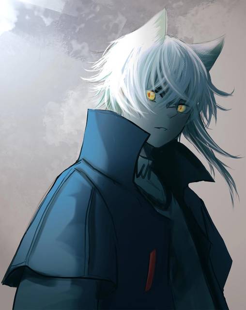 А позади него стояло еще двое оперативников. Невысокий нэко-парень. С светло-голубыми, почти белыми волосами. Одетый в чёрную униформу лоли-полиции. Dimon 236-ой уровень. Бакэнэко. Проклятый дрифтер хаоса. Стажёр отряда спец назначения. Лоли полиция.