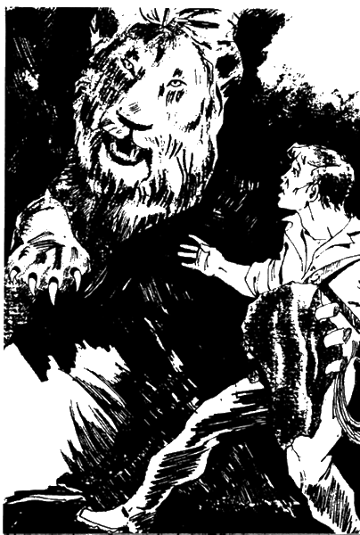 — Мы уже как-то говорили о пещерах в горах Атласа[2], которые, конечно, не могли меня не заинтересовать, — рассказывал Жанмер. — Я отправился туда с кабилами[3]. Мы исследовали несколько небольших пещер и обширных гротов. Мы трудились уже несколько недель, когда произошла катастрофа: рухнувшие скалы погребли под собой моих кабилов и все снаряжение, и я оказался в одиночестве в совершенно дикой местности. То было своего рода плато, настоящий остров, откуда я мог спуститься лишь с помощью длинной веревки. В моем распоряжении были следующие предметы: кирка, десять-двенадцать метров веревки, нож и, наконец, карабин, но без патронов — за несколько минут до катастрофы я потратил два патрона, выстрелив в пантеру. У погибших кабилов остались все мои боеприпасы, а также приборы и запасы продовольствия. Близился вечер. Мне хотелось есть и пить. Становилось все холоднее, к тому же дул промозглый ветер. Ночь я провел ужасно, мучительно страдая от холода. День оказался еще более тяжелым — я изнемогал от лучей солнца… Прошло более четырех суток, а я так и не нашел никакого средства к спасению. В центре моего «острова» пролегала широкая щель, но я не знал, куда она ведет. Подвергаясь явной опасности, я предпринял несколько попыток исследовать ее. Каждый раз меня останавливала темная дыра, вероятно, кончавшаяся тупиком. И все-таки я постарался в нее спуститься, используя веревку и кирку, но до дна так и не добрался. Я попытался также подавать различные сигналы, надеясь привлечь к себе внимание кабилов из окрестных селений. Вечером использовал для этого карманный электрический фонарик. Но никто не шел мне на помощь. Да и что толку, если бы кто-то и откликнулся на мой зов о помощи — на плато подняться не легче, чем с него спуститься! Потребовалось бы специальное снаряжение, которого не было и не могло быть у кабилов, живших в этой пустынной местности. Я жестоко страдал от голода и жажды. На четвертые сутки мне показалось, что я схожу с ума. На пятый день я вновь исследовал щель, и на этот раз мне повезло немного больше: на одной из стен я обнаружил карниз, что весьма облегчило мой дальнейший спуск. Далее я очутился в крутом, но доступном для прохождения по нему человека коридоре. Я двинулся вперед. Вскоре я заметил еще одну дыру и, освещая себе путь карманным фонариком, направился к ней. Вокруг была кромешная тьма. Однако я решил рискнуть и после нескольких неудачных попыток все-таки достиг дна. На мое счастье там оказался еще один коридор. Сперва то был довольно отлогий проход, но потом он начал круто подниматься вверх, что показалось мне опасным. Все же я шел вперед — меня одолевала сильная лихорадка, и я перестал думать об опасностях. Вдруг где-то внизу мелькнул слабый свет. Я ускорил шаги, но в нескольких метрах от намеченной цели кубарем полетел вниз. Придя в себя после падения, я почувствовал сильную боль в правой ноге. Отныне передвигаться пришлось, как говорится, на «трех лапах». Пространство, где я очутился, было шире тех проходов, по которым я попал сюда. Сквозь щель, в которую мог бы пролезть даже человек. Сюда проникал слабый свет. В тот момент, когда я пополз к этой щели, раздалось глухое рычание, и я увидел две небольшие светящиеся точки. Это была львица! Хотя меня мучили жажда и голод, к тому же сильно лихорадило, я испытал настоящий страх. Но вскоре успоко