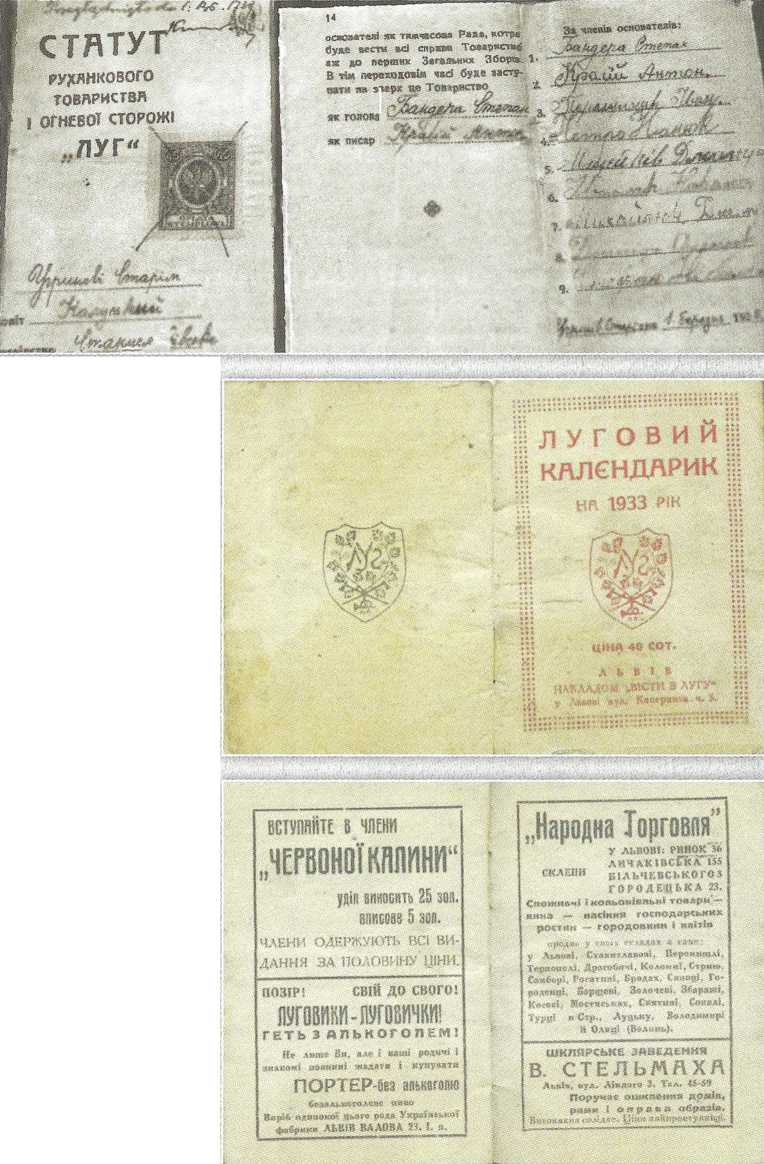 С. Бандере в г. Трускавец (Львовская обл.), в оформлении форзаца - фотографии С. Бандеры с пластунами (первый разворот) и повстанцами УПА (последний разворот)