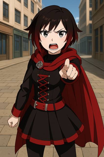Следом — Блейк и Эмеральд. Одна с ушками и книгой, вторая — в лёгкой стойке, как будто собирается убежать или напасть.