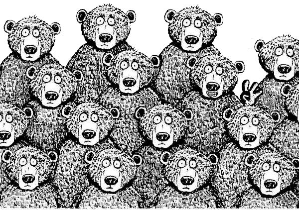 Волк протер глаза и мобилизовал свои хищные чувства. Откуда взялось это пение? Перед ним стояли двое парализованных от страха детей-гномов, которым явно было не до пения. Его пробковый нос дернулся и наполнился смолой, его листья-уши насторожились, он почуял и прислушался к лесу: шесть Цветных Медведей, поющих, удаляющихся в северном направлении. Гм. Шесть упитанных Цветных Медведей или двое тощих детей-гномов. Ему нужно было решить, что он предпочитает на завтрак. Волк злобно зарычал: Вечно эти решения! С Цветными Медведями он обычно справлялся, но шесть сразу — это могла быть утомительная битва с неопределенным исходом. К тому же он только что проснулся — на завтрак он предпочитал легкоусвояемую, нежирную пищу. Медведи, вероятно, тяжело лежали бы у него в желудке целыми днями, а кошмаров ему и так хватало, короче говоря: Лиственный Волк решил выбрать двух неаппетитных гномов.