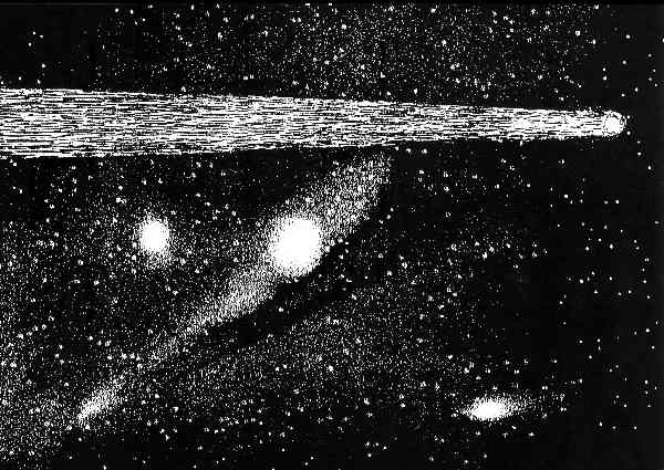 Бромм! Бромм! Бромм! Бромм! Бромм! Бромм! Бромм! Бромм! «Погоди-ка! – подумал Энзель. – Что здесь вообще происходит? Где я? Почему так темно? Что это за история с космосом и падением и всё такое? И где Крете?» «Ты во мне!» – сказал голос, смертельно печальный и трогательно одинокий. – «Останься же!» «Я – в чём? Кто ты?» – спросил Энзель. «Я – озеро. Но я не всегда был озером. Когда-то я был метеоритом, могучим куском космического льда, плывущим сквозь вселенную. Я показал тебе свои воспоминания. Это был мой полёт через космос. Падение на эту планету. Ты мог бы хоть немного поблагодарить. Не каждому дано разделить воспоминания метеорита». «Э-э, спасибо!» – механически подумал Энзель. Как уроженец Замонии, он был знаком с феноменом телепатии. Существовал целый ряд форм жизни, которые могли общаться посредством мыслей. Но он ещё никогда не говорил с озером. Или, вернее: не думал с ним. «Это было моё лучшее время, там, в космосе. Невесомость. Бессмертие. Вернее: идеальная сохранность. Одиночество – ну да ладно. Но за всё нужно платить. Зато какой вид открывался. Вселенная, круговая панорама. Теперь я всего лишь одинок. Я жидкий, силы притяжения этой проклятой планеты сильно тянут меня вниз, я должен постоянно бороться, чтобы не просочиться в землю. Какая-то другая сила тянет с моей поверхности, хочет, чтобы я испарился. Довольно безжалостные законы природы здесь! Всё направлено на бренность. Нахожу это убогим. В космосе всё иначе». «Что это было за существо, которое вышло из тебя?» «Ты имеешь в виду ведьму?» «Это была ведьма?» Космический пруд замолчал. В голове у Энзеля глухо загудело, ему казалось, что он чувствует ощущения водоёма. Он чувствовал раскаяние. Ярость. Стыд. «Я ничего не знаю ни о какой ведьме». Голос озера звучал упрямо. «Ты только что сказал "ведьма"». «Не говорил я». «Говорил». «Не говорил!» «Говорил!» «Ни за что!» «Говорил!» «Ни за что!» Тишина. Что это было – упрямство, которое почувствовал Энзель? Он уловил эмоции, которые напомнили ему его ссоры с Крете. «Я ничего не знаю ни о какой ведьме», – сказал голос, всё ещё надувшись. «Я знаю только, что что-то было во мне, много миллионов лет. Замёрзшее. Мёртвое, как я думал. Но когда я растаял, оно снова проснулось. И ушло в лес. Это всё, что я знаю. Можем мы теперь сменить тему?» «Думаю, мне нужно идти», – неуверенно сказал Энзель. «Ты ведь не уйдёшь снова? Пожалуйста, останься здесь!» Страх. «Мы могли бы так много поговорить!» «И о чём же ты хочешь поговорить?» – спросил Энзель. Смущение. Напряжение. Беспомощность. «Э-э, ну, не знаю... Я ещё никогда не общался». Стыд. «Тебе нечего стыдиться. Я могу тебя научить». Радость. Благодарность. «Правда? Это было бы здорово. Я мог бы показать тебе взамен картины». «Картины?» Гордость. «Ну да, у меня есть виды почти всей вселенной. То, что ты видел до сих пор, было ничем. У меня также есть воспоминания о моей родной планете. До того, как нас разбил этот астероид. До того, как я стал метеоритом. Пойдём! Погрузись в меня! Мы отлично проведём время. Я покажу тебе вселенную. Давай же!» Желание. Энзель задумался. Это было предложение, от которого не так-то просто отказаться. Он мог бы стать первым фернхахом, побывавшим в космосе. «Можешь себе представить, как выглядит взрыв звезды? С близкого расстояния? Как сгущаются галактики? Ты когда-нибудь видел космических змей, из жидкой ртути и д