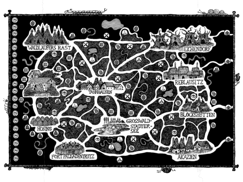 После того как Мифорез покинул крепость, начались его годы странствий{16}. Он исколесил Замонию в запутанном путешествии, которое он в основном совершил пешком и фактические этапы которого больше не поддаются проверке. Его "Путевой дневник сентиментального динозавра", созданный в то время, во всяком случае, не может служить серьезным источником, если вы придаете значение научной точности. Мифорез описывает в нем многочисленные места Замонии очень подробно, но, как можно доказать, литературно преувеличенно, так что можно усомниться в том, действительно ли он там бывал. Среди прочего, он сообщает о путешествии по городу мертвецов Дулльсгард, в который на самом деле ни один живой не мог войти, не будучи мумифицированным заживо жителями этого жуткого места. Описание Мифореза, тем не менее, долгое время использовалось на уроках географии Замонии, поскольку других документов о внешнем виде внутреннего Дулльсгарда не было, и его подробные объяснения были настолько убедительными, что даже эксперты по Дулльсгарду были введены в заблуждение.Гральсунд