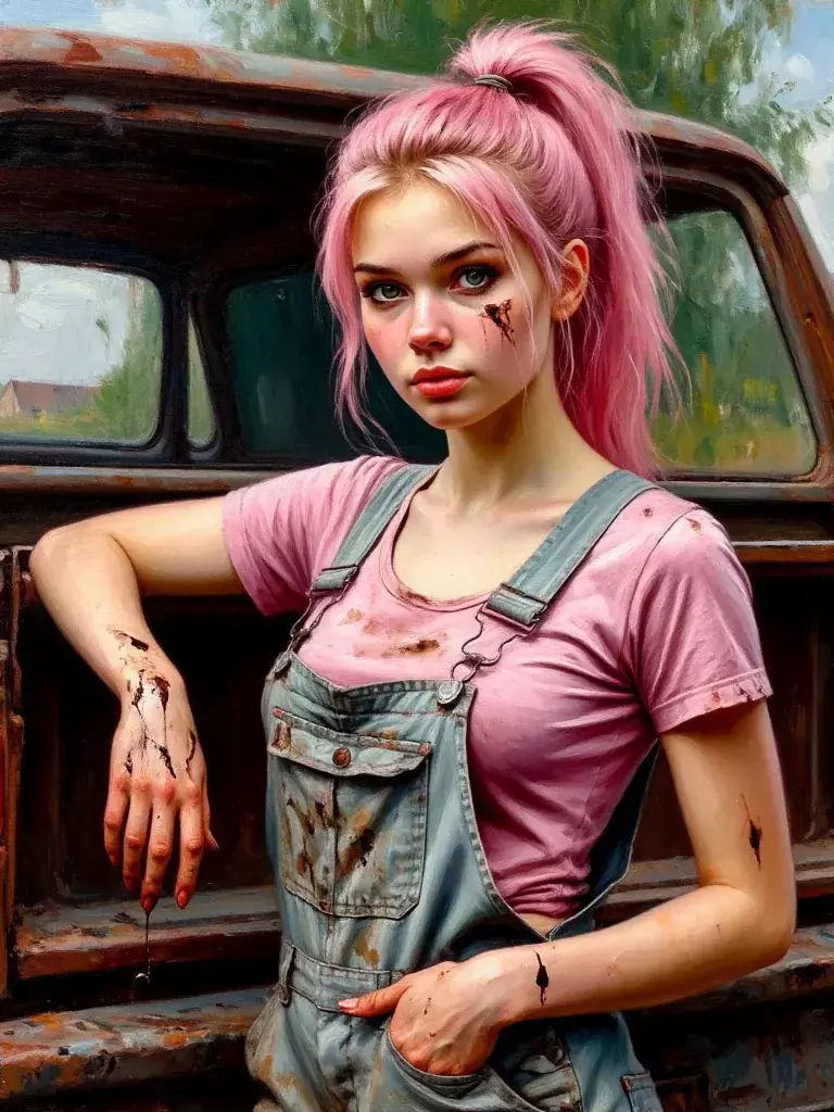 — Антон, — остановил я его. — Ты надел перчатки сразу, как я зашёл. — Вы не понимаете, — взгляд его метнулся к раковине. — Даже микроскопическая… Ладно, надо закончить… но потом я должен… Он профессионально, но с нескрываемым волнением, забинтовал мою руку, используя при этом лёгкую целительскую магию — слабую, но ощутимую. — Всё, — он отступил на шаг. — Повязку менять раз в день. Следить за отсутствием покраснения и отёка. При малейших признаках воспаления… — но договорить он не успел. Сорвав перчатки, Антон бросился к раковине и начал с каким-то остервенением мыть руки, поливая их антисептиком. — Спасибо, — сказал я, разглядывая аккуратную повязку. — Отличная работа. Он только кивнул, не прекращая своего ритуала очищения. Я вышел, осторожно прикрыв за собой дверь. Снаружи Тихон, куривший у забора, вопросительно поднял бровь: — Живы, Ваше Сиятельство? — Пока да, — я продемонстрировал забинтованную руку. — Странный он, конечно. — Все мы тут немного со странностями, — усмехнулся Тихон. — А Косой нигде из-за своих заскоков не задерживался. К нам-то он совсем от отчаяния прибился. У нас ведь тут и зарплат-то, по сути, нет. Работает за еду. — Ничего, выправим всё это, — вздохнул я. — Ну что, теперь к Шурке? — перевёл Тихон тему. — Машину вашу уже подогнали. ㅤ Дорога заняла немного времени. Через пять минут мы уже заходили в открытые ворота мастерской, выкрашенные так, будто в магазине красок произошёл взрыв. А ещё над воротами на крыше торчала фигурка дракона в полёте, сваренная из проволоки и всякого хлама — видимо, талисман. Мой пикап стоял рядом с воротами. Да уж, досталось ему! Из-под машины, поднятой на домкрате, виднелись ноги в заляпанном маслом комбинезоне. — Шурка! Клиент! — окликнул Тихон, слегка пнув колесо. Из-под машины раздался металлический грохот, стон, а следом и приглушённое бормотание чего-то не очень лестного. На самодельных салазках выкатилась девчонка в рабочем комбинезоне, заляпанной розовой футболке. Розовые волосы оказались собранными в небрежный пучок куском проволоки, а пятна чего-то горюче-смазочного на лице и руках напоминали боевой камуфляж. — О, новенький! — она вскочила, вытирая руки о комбинезон, лишь размазывая грязь ещё сильнее. — Этот монстр твой?