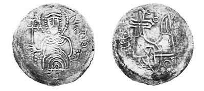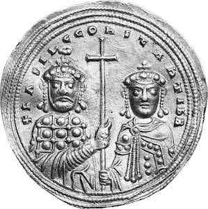 Монета с изображением императоров Василия II и Константина VIII. 1005–1025