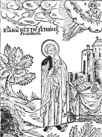 Преподобный Нестор Летописец. Миниатюра из Радзивиловской летописи. Конец XV в.