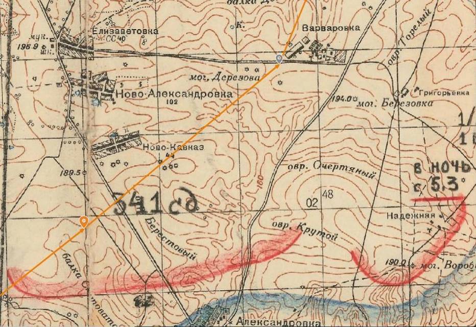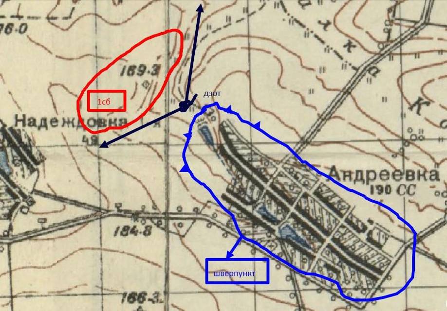 Объектом атаки мы наметили дзот противника, который был выдвинут немного вперёд относительно основной линии немецкой обороны в опорном пункте — село Андреевка. Из этой огневой точки и прилегающего к ней окопа простреливались почти все подходы по Балке Копани с нашей стороны. Ну и по позициям первого стрелкового батальона на высоте 169,3 немцы периодически стреляли из станкового пулемёта. Но ночью. Днём дзот не подавал никаких признаков жизни. Наши его пытались разрушить огнём с закрытых позиций из 76-мм дивизионных орудий, и даже причиняли небольшие повреждения, в дневное время. Но ночью немцы отыгрывались. Засыпали высоту и позиции стрелковых рот минами не давая высовываться из укрытий, а сами, под прикрытием миномётного и пулемётного огня, восстанавливали разрушенное. Хотя при мне это было всего один раз, и больше пехота о таком одолжении не просила. — «Пущай лучше фрицы из пулемёта ночью палят, а то от ихних мин житья нет.» — Жалобились пехотинцы на другой день после бессонной ночи. Сегодня снова не поспят. Но кто им доктор. У меня приказ. А дзот это единственный объект по которому у нас есть хоть какие-то наработки. Соваться в опорный пункт, где живёт целый усиленный батальон противника, себе дороже. — Ну, как у вас? — добравшись до нашего НП, спрашиваю у Андрюхи. — Тихо пока. Не шевелится фриц. Но рано ещё. Обычно в десять вечера начинают. — Смотрит он на свой хронометр. — Ясно. Баранов, дуй к нашим. Пару Ростова и Джафарова отправишь на НП. И пусть экипируются по полной боевой, гранат и патронов побольше. Всем остальным отбой. Сам остаёшься на месте. — Есть. — Козыряет парнишка и исчезает в отнорке хода сообщения. — Ротный на месте? — интересуюсь, где можно найти командира опорного пункта. — Был на КНП, где сейчас не знаю. — Докладывает ефрейтор Евдокимов. — Бдите тут. Я с пехотой договариваться. — Ухожу я налаживать очередное взаимодействие. Пробравшись по затопленным и местами осыпавшимся ходам сообщения на командный пункт первой роты, встречаю на конечном участке пути неожиданное препятствие в лице часового. — Ротный у себя? — спрашиваю у караульщика после обмена паролями. — У себя. Но не велено никого пускать. — Отвечает он. — Он что там, с женщиной? — пытаюсь узнать, почему. — Нет, с мужчиной. С комиссаром. — Уточняет боец. — А у них что, любовь? — начинаю шутковать я, подмигнув часовому. — Да спят они, только легли — Возмущается он. — Я понимаю, что не радио слушают. — Тихо произношу я, после чего повышаю децибелы. — А у нас что, детское время уже наступило⁈ Спокойной ночи малыши даже не начинались. Некогда спать! Война идёт. — Уже во весь командный голос говорю я. Мне бы самому пару часиков кумарнуть. Да и жрать хочу. — Это кто там шумит? — высовывается из-за плащ-палатки, закрывающей вход в землянку, ротный. — Это артиллерия грохочет. Так же, как молнии, сверкают огненные взрывы. Так же, как ветры, врываются конные отряды, и так же, как тучи, проносятся красные знамёна. Это так наступает Красная Армия. — Рассказываю я сказку на ночь. — А, это ты разведка. — Узнаёт он меня. — Чего хотел? Пропусти его, Хейфиц. — Взаимодействие наладить. — Протискиваюсь я мимо охранника в тесную землянку командного пункта. — Опять ночью шуметь будете, спать не дадите. — Зевнув, возмущается ротный. — Не шуметь, а работать. Немцев в дзоте хотим прищучить и з