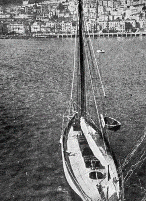 Купив лодку, я сразу же отправился на юг Франции, покинув Англию в тот момент, когда Шеклтон начинал свое последнее путешествие. Моя лодка очень хорошо выдержала штормы в Бискайском заливе и, пережив их я не мог представить себе худшей погоды, которая могла бы остановить Firecrest. Более года я путешествовал по южному побережью Франции с молодым англичанином и, между прочим, участвовал в турнирах по лаун-теннису на Французской Ривьере. Лаун-теннис долгое время был моим любимым видом спорта, но после более чем двух лет жизни на борту и путешествий все, что происходило на суше, стало неважным для того, кто начал плавание. Я отправился в путешествие в Америку только ради удовольствия, и чтобы доказать себе, что могу сделать это в одиночку. Более года я тренировался физически, путешествуя в любую погоду, учился управлять парусами в одиночку. Только когда я почувствовал, что готов, когда понял, что смогу выдержать физическое и психологическое напряжение, я отправился через Атлантику. Наконец настал славный день отправления. Веселая гавань Канн купалась в весеннем солнце. С одной стороны гавани доминируют старый город и две большие квадратные башни. С другой стороны - к причалам было пришвартовано около пятидесяти белых яхт. Рядом с моей лодкой стоит Perlette, небольшая 15-футовая лодка, принадлежащая двум молодым девушкам, которые являются ее единственной командой. Их смелость вызывает восхищение всех рыбаков и сухопутных крыс на набережной, которые останавливаются, чтобы посмотреть, как они босиком порхают по такелажу. Чуть дальше Lavengro, 120-тонный кеч, готовится отплыть в тот же пункт назначения, что и я, — Гибралтар. Хотя у меня было мало шансов победить лодку, которая в десять раз больше моей и укомплектована экипажем из семи человек, я не хотел проигрывать на старте. Мне удалось первым сняться с якоря и выйти в море под полными парусами. Легкий ветерок усиливается, и я вынужден убрать топсель, даже когда прохожу между молами. Там я машу на прощание двум маленьким французским морячкам и французско-бретонской команде яхты «Эблис», которые махают мне платками с пирса. За пределами гавани ветер снова усиливается, и мне приходится менять стаксель, зарифлять грот и делать это быстро, потому что я вижу, как «Лавенгро» покидает гавань и мчится за мной. Мы оба лавируем против сильного встречного ветра и хотя я плыву не так быстро, как «Лавенгро», я могу лучше держать ветер. Мы мчимся к открытому морю и оставляем красивый золотистый остров Леринс с подветренной стороны. За пределами защищенной бухты волны и ветер усиливаются. Мой подветренный борт глубоко погружен в воду. Брызги разлетаются над головой. Рулить приходится в промасленной одежде. Но мое сердце легко, и пока нос Firecrest режет волны, я пою жалобную песню бретонских рыбаков. "La bonne sainte lui a répondu: II vente; C’est le vent de la mer qui nous tourmente." Добрая дама ответила: «Дует ветер; Это морской ветер мучает нас». Видимость падает, и впереди появляются черные облака. Земля становится едва различимой. В половине пятого я пересекаю курс «Лавенгро», иду на другом галсе, когда нас настигает сильный шквал. В спешке я опускаю грот и убираю стаксель. Когда задача была выполнена, я успел мельком увидеть «Лавенгро», мчащийся под порывами ветра в противоположном направлении. Я настолько устал от сегодняшних усилий, что остаюсь на 