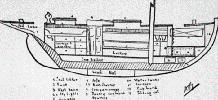 Теперь, когда я публикую линии Firecrest, я полагаю, что все теоретики начнут спорить о ней и пытаться доказать, она хорошая лодка или нет. Ну, я мог бы продать ее в прошлом году и заказать постройку лодки во Франции за ту сумму, которую я за нее прошу, но я люблю эту старую девочку и буду плавать на ней, пока она будет служить. Она не уступает ни одной лодке своего размера. У меня очень хорошие условия для проживания внизу и достаточно места, чтобы перевозить не только еду и снаряжение, но и все мои вещи, потому что она — мой единственный дом.