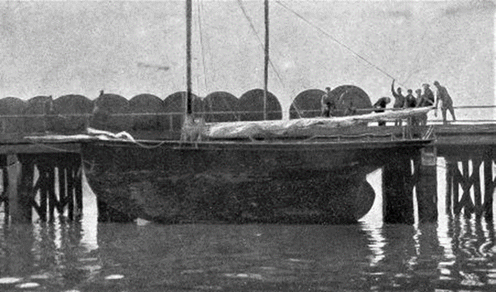 «Файркрест» у причала Форт-Тоттен, Лонг-Айленд, с ракушками на корпусе.