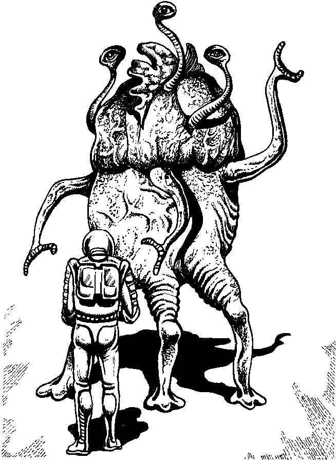 Шестнадцать с половиной минут спустя Главный Переводчик Гэри Тоулер кланялся Губернатору, Его Светлости Графу Пар-Хаворлему. После стольких лет работы в Городе Тоулер по-прежнему дрожал от страха при виде партассианина. Пар-Хаворлем был трех метров высоты, необычайно крепкого сложения, и его огромное тело выглядело бы как цилиндр, не будь у него рук и ног. Он напоминал пузырь в двумя тройными разветвлениями: одним снизу, образующим ноги, другим на середине — руки. Как и у других представителей этого вида, у Пар-Хаворлема с трудом можно было различить черты лица. Каждая длинная рука кончалась двумя гибкими, противостоящими друг другу пальцами с выдвижными когтями, которые обычно оставались спрятанными. Наверху цилиндрического тела имелись три симметрично расставленных глазных стебля, а на макушке «головы» — мясистый гребень. Прочие части лица: рот, дыхательные отверстия и уши, а также половые органы, скрывались под широкими плечами. Нулы были таинственными существами, внешний вид которых мало о чем говорил. Лишь гребень часто выражал то, что творилось у них внутри, придавая им жестокий вид. — Переводчик Тоулер, — сказал Пар-Хаворлем безо всякого вступления, — с сегодняшнего дня наш образ жизни меняется. Близятся неприятности, мой маленький двуногий друг. Вот в чем будет заключаться твоя задача…