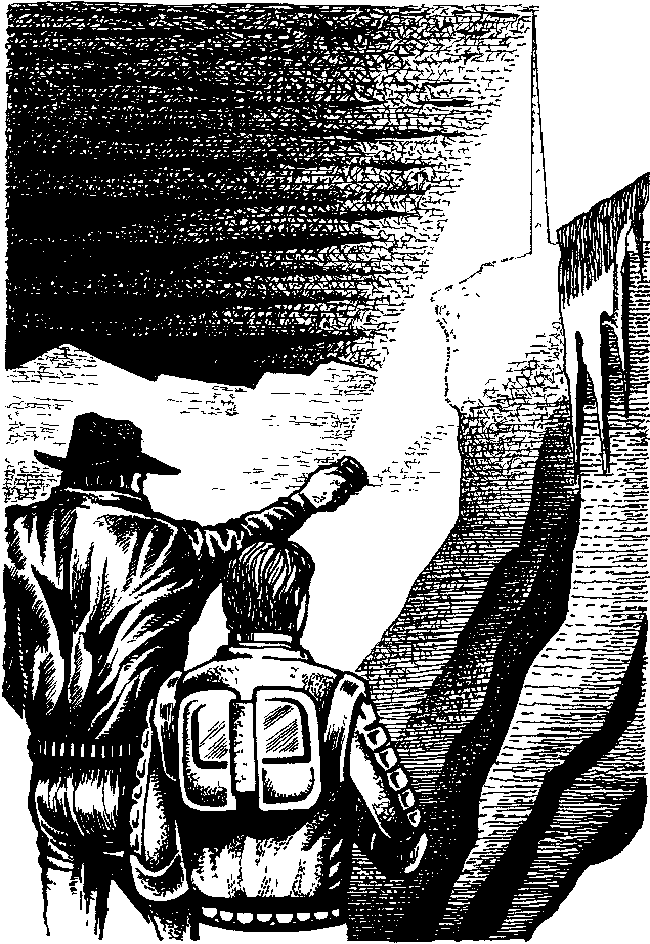 Тот колебался, наполовину готовый уйти, затем повернул обратно. — Мы пришли из того времени, когда солнце слепило глаза. Мы видели Денвер в то время, когда он был большим и великим городом. В то время эта земля был покрыта травой, и шли дожди, и широкие поля лежали там, где теперь плещется море. Старец опустился на песок перед клеткой. Глаза возбужденно загорелись, две костлявые руки вцепились в прутья. — Вы видели мир молодым! — воскликнул он. — Вы видели зеленую траву, бродили под дождем. Теперь дожди очень редки… — Мы видели все, о чем ты говорил, — заверил Карл, — но хотим спросить, почему нас встретили как врагов? Мы пришли как друзья, надеясь встретить тоже друзей, но готовые и к войне. — Айе! Готовые к войне! — воскликнул дребезжащий голос старика, глядя на револьверы. — Это прекрасное оружие. Говорят, вы устлали пески трупами, прежде чем вас схватили. — Но почему нас не приняли как друзей? — настаивал Карл. — Здесь нет друзей, — фыркнул старик, — с тех пор как пришел Голан-Керт. Все готовы перегрызть друг другу горло. — Кто это, Голан-Керт? — Голан-Керт пришел из Космоса, чтобы править миром, заговорил речитативом старик, — он не человек и не зверь. В нем нет добра. Он ненавидит всех. Он чистый Дьявол. Потому что во Вселенной нет дружбы или добра. У нас нет доказательств, что Космос благожелателен к нам. Когда-то давно наши предки верили в любовь. Это обман. Дьявол могущественней добра. — Рассказывай, — попросил Билл, прижавшись к прутьям, видел ли ты сам Голан-Керта? — Айя, я видел. — Расскажи нам о нем. — Я не могу! — Глаза старика наполнились ужасом. — Не могу! Голос его упал до невнятного шепота, и он прижался к решетке. — Люди вне времени! Я хочу вам кое-что рассказать. Его ненавидят, потому что он учит ненавидеть. Мы подчиняемся ему, потому что должны делать это. Он держит разум любого в Своей руке. Он правит только внушением. Он не вечен… Он боится… Есть выход, если бы нашелся хоть один храбрец… Лицо старика побледнело, глаза наполнились страхом. Все его мускулы напряглись, и похожие на клешни руки с бешеной силой вцепились в прутья. Задыхаясь, он прижался к решетке. Люди прошлого с трудом разбирали его слабый, прерывистый шепот: — Голан-Керт… ваше оружие… не верьте ничему… закройте свой разум от внушения… Он замолк, хватая ртом воздух. — Я боролся, — запинаясь, через силу продолжил он. — Я победил… Я рассказал вам… Он убивает меня… Но не сможет убить вас… сейчас… когда вы… знаете… Старик был на грани смерти. Двое с широко раскрытыми глазами наблюдали за тем, как он отталкивает смерть, выигрывая драгоценные секунды. — Ваше оружие… убьет его… его легко убить… для того, кто не… поверит в него… он… Шепот затих, и старик замер перед решеткой на песке. Двое продолжали смотреть на скрюченное человеческое существо. — Убит внушением, — выдохнул Карл. — Он был храбрым человеком, — кивнул Билл. Карл внимательно осмотрел труп. Его глаза задержались на кольце с ключами. Опустившись на колени, он подтащил тело поближе, его пальцы сжались на кольце и выдернули связку ключей из-за набедреной повязки. — Мы идем домой, — сказал он. — И по дороге нам придется немало пострелять, — согласился с ним Билл. Он подобрал револьверы и зарядил их. Карл взял ключи. После нескольких попыток он нашел тот, который был нужен. Замок заскрипел, и, дверь, протестующ