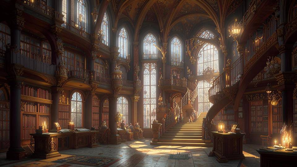Д-а-а-а-а-а! Вот это я понимаю — Библиотека! Именно с большой буквы! И самое интересно, что в моих исследованиях Тира я сюда не доходил. За большим зданием администрации Академии, стоило только обогнуть его по узенькой улочке, открывалась она —Библиотека. Постройка в три высоких этажа, явно того же зодчего, что возводил административный корпус. Размеры мне было затруднительно оценить, потому что здание уходило вглубь территории Академии и слева находился примыкающий стена-к-стене высокий корпус администрации, а с другой стороны алхимический корпус. Но здание явно было огромным. В огромном фойе библиотеки было очень светло от высоких витражных окон, с фасада здания. После дверей, в просторное фойе, спускалась широкая лестница, ждущая нашу группу, которая стояла на входе, пораженная красотой убранства и количеством книг, собранных здесь. А запах! Боже мой какой здесь был запах книг! В свое время, меня пришедшего в свою первую, детскую библиотеку поразил этот запах. Поразил и влюбил в себя на все жизнь. Тонкая смесь запаха настоящей бумаги, клея, пыли и старины. Не знаю, как на остальных действует этот запах, но на меня, настоящего библиофила, действует очаровывающе. Вот и здесь был такой же запах. Только куда сильнее.